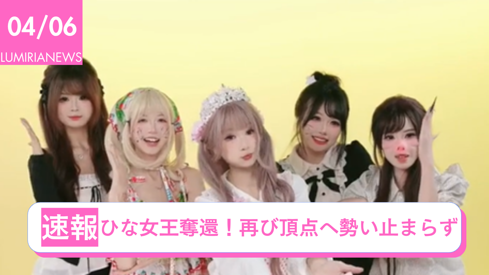 2026年4月6日、LUMIRIA(ルミリア)のLIVE配信にて開催された「女王杯」で、ひなが再び女王の座を奪還しました。