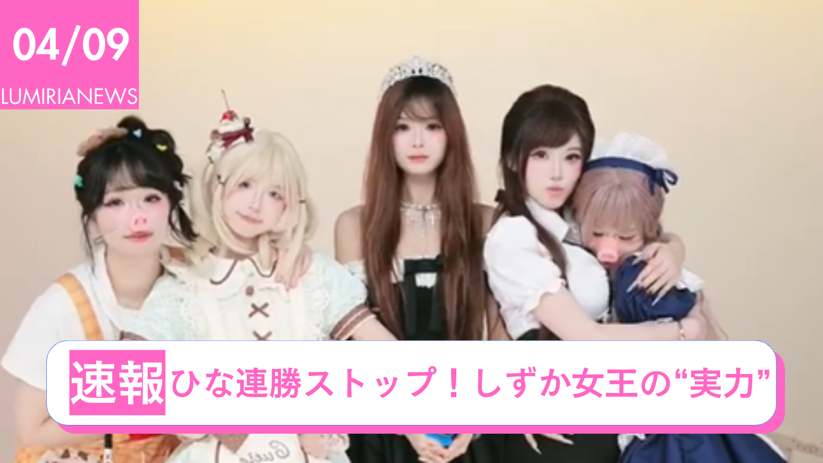 2026年4月9日、LUMIRIA(ルミリア)のLIVE配信で開催された「女王杯」にて、しずかが女王の座を奪還しました。